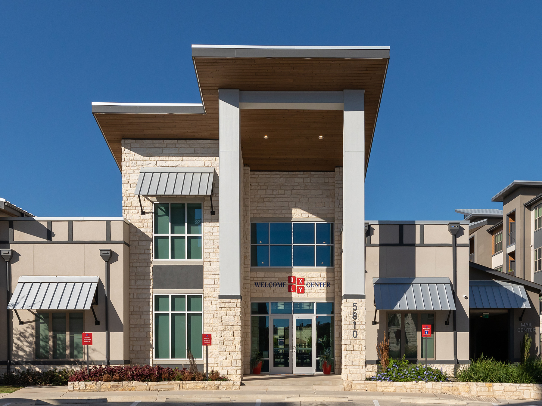 Oxly is a HUD-financed contemporary multifamily development located in San Antonio, Texas, designed to appeal to young professionals seeking modern living with access to both urban amenities and nature. The project is part of University Village, a larger master-planned community that includes additional residential and retail components, including Lyric at the Merc, also designed by HEDK. Oxly benefits from direct adjacency to the Leon Creek Greenbelt, offering residents immediate access to trails and outdoor recreation.