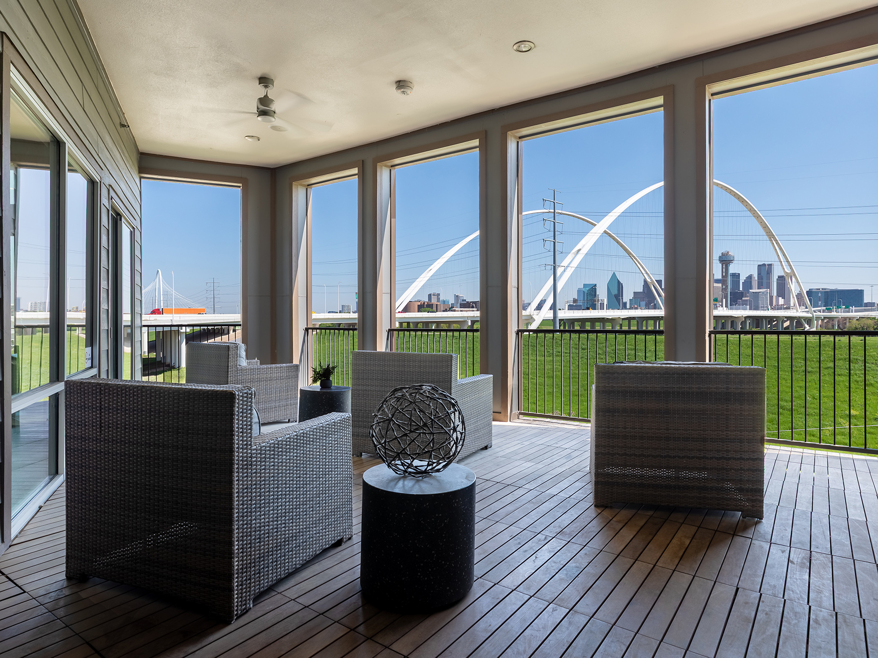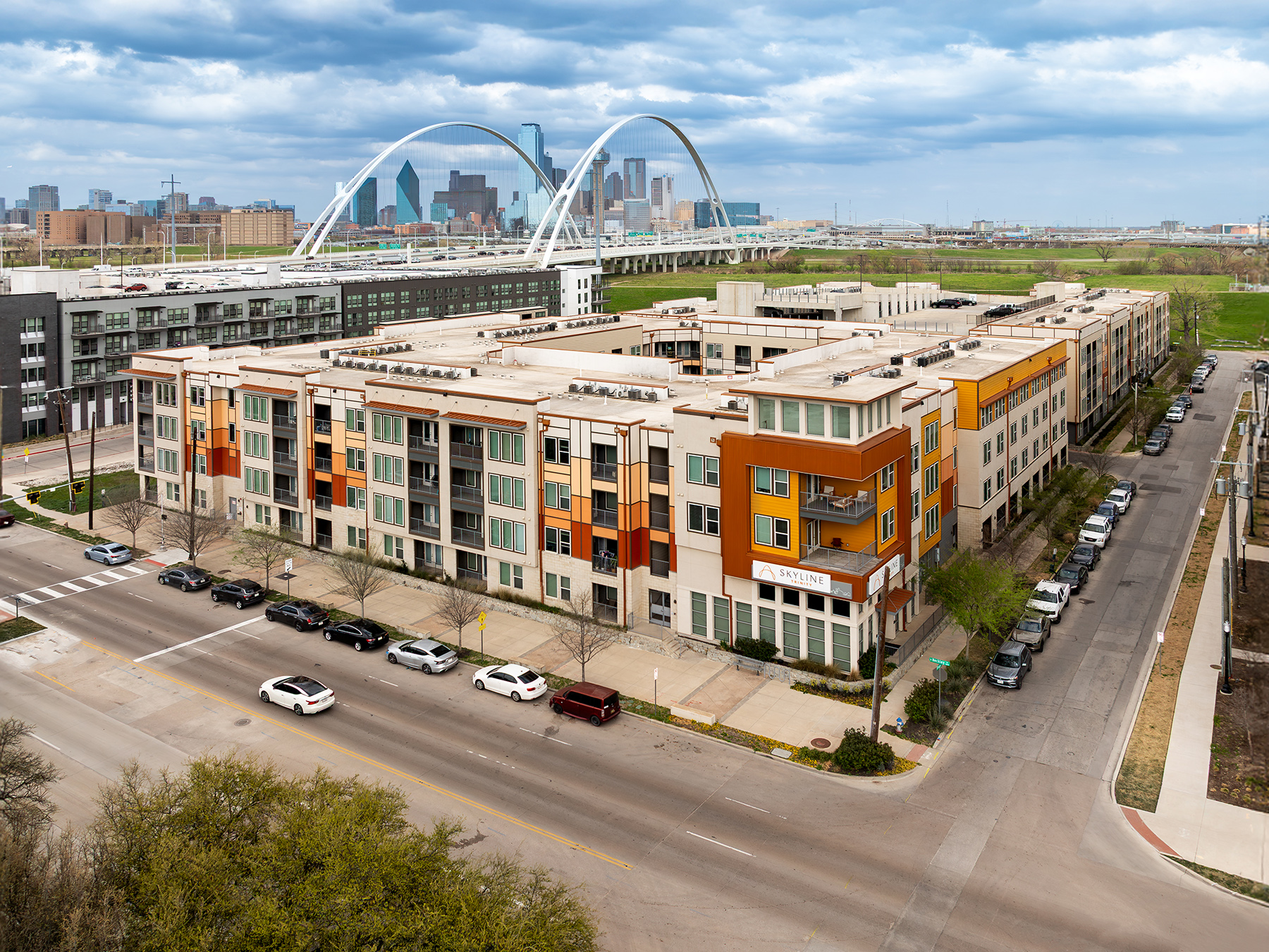 Skyline Trinity is a modern multifamily community located on the western edge of the Trinity River, offering stunning views of the Dallas skyline. Designed to maximize its unique setting, the building features a rooftop deck and strategically placed units that capture the one-of-a-kind panorama.