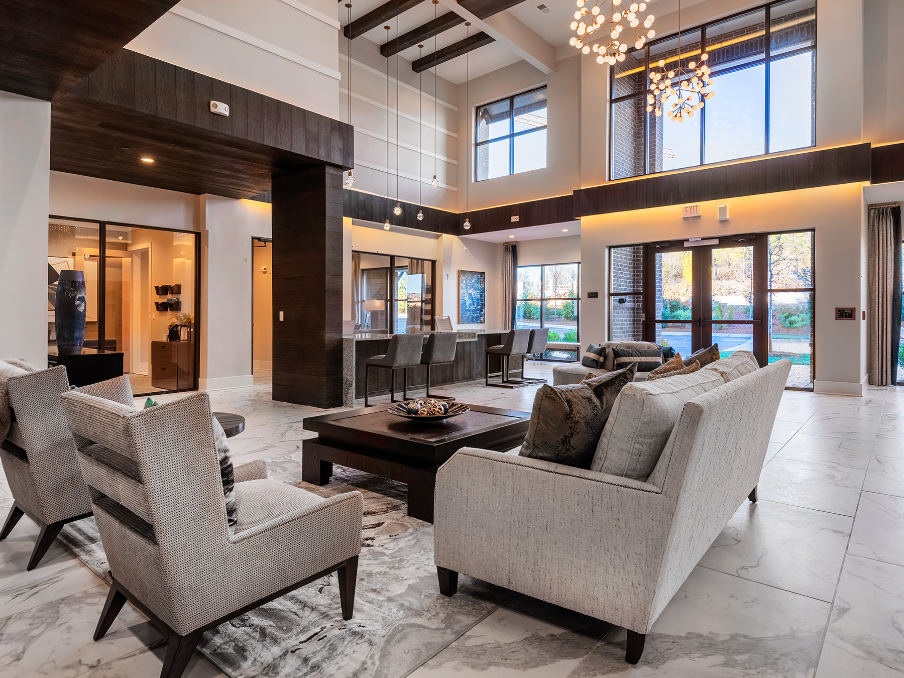 The architecture features large windows, steeply pitched roofs with asphalt shingles and metal accents, and an earth-toned palette of contrasting brick and decorative board and batten, capturing the character of the Middle Tennessee region. Residents enjoy a robust amenity package including a two-story clubhouse, fitness/yoga studio, co-working spaces, a resort-style pool, a package room with refrigeration, a dog park, and more. The Harper demonstrates how architecture can bridge challenging topography and evolving community needs to create a place that feels both rooted and refined.