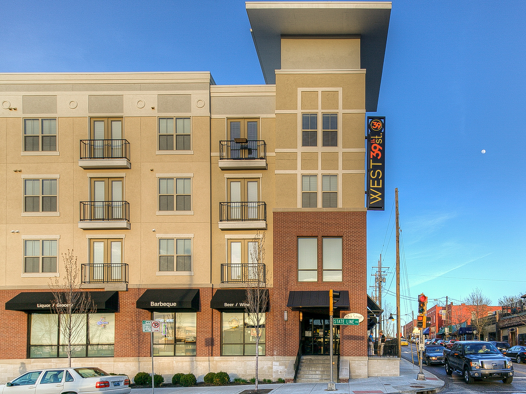 West 39th Street is a residential development in the Westport neighborhood of Kansas City, a dynamic, walkable neighborhood near the University of Kansas Medical Center. The project responds to its dense urban context with a design that prioritizes scale, materiality, and spatial layering. The four-story structure sits above a 1.5-level basement garage, negotiating a steeply sloped site while still meeting accessibility requirements. Its exterior blends brick and stucco veneer, offering durability while referencing the texture and tone of surrounding historic architecture. This refined material palette bridges traditional and modern aesthetics, giving the building a strong but contextual street presence.